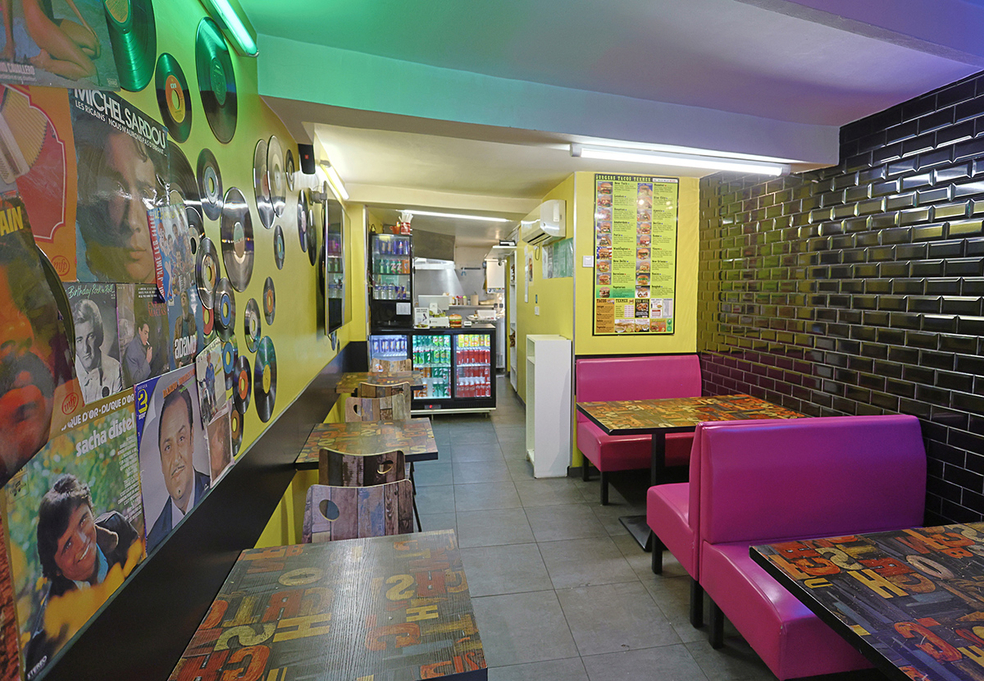 En poussant la porte du restaurant, on découvre une ambiance chaleureuse qui revisite l’esthétique des diners américains. Les murs en briques noires donnent du caractère, les sièges rose pastel rappellent les banquettes rétro des années 60, et les vinyles accrochés un peu partout ajoutent une touche musicale qui fait sourire dès l’entrée. L’ensemble offre un décor singulier, moderne et nostalgique à la fois, qui transforme chaque repas en petite parenthèse dépaysante.
